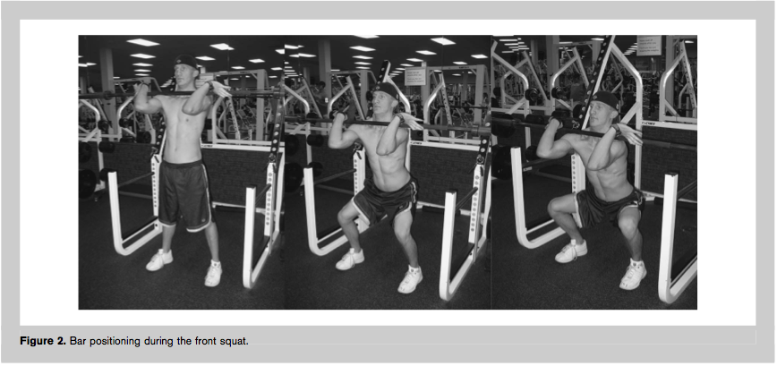"Although bar position did not influence muscle activity, muscle activity was significantly different between the ascending and descending phases. The front squat was shown to be just as effective as the back squat in terms of overall muscle recruitment, with significantly less compressive forces on the knee" (Gullett, Tillman, Gutierrez, & Chow., 2009, p.291). The authors also found no difference in shearing forces on the knee between front and back squat.