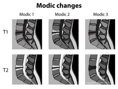 Modic changes are a term which is used to describe the changes of the vertebral endplate which are related to spinal degeneration. They are called 'Modic changes' after the author Dr. Modic, who was the first Doctor to identify and classify degenerative endplate changes and marrow changes surrounding the intervertebral disc.